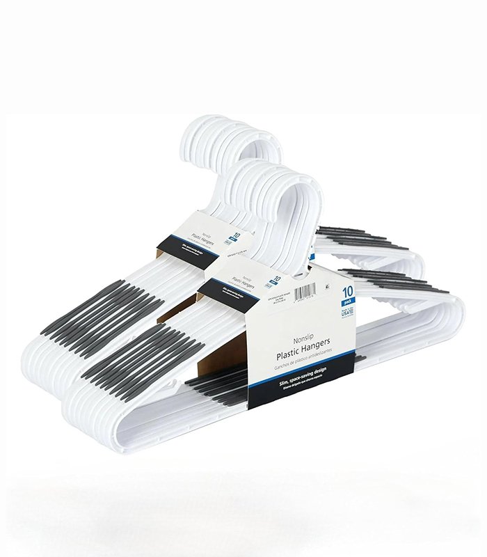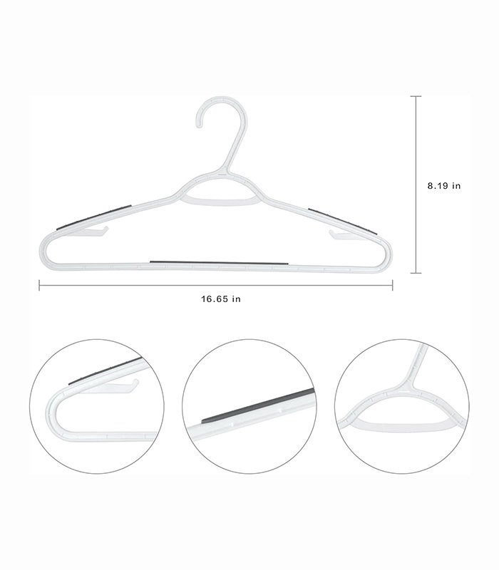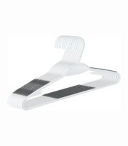 Keep your wardrobe neat and organized with these non-slip clothes hangers. Made from durable plastic with anti-slip TPE strips, this 2-pack set includes 10 strong white hangers perfect for shirts, pants, dresses, and more. Designed to prevent clothes from slipping and maintain their shape.